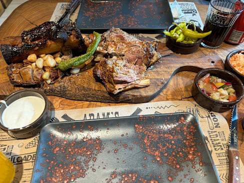 10/10I recently visited Adam's Smokehouse after seeing clips on social media and hearing great things about this place—and let me tell you, it lived up to the hype! Craving a real meat experience, we decided to give it a try last night. From the moment we arrived, we were greeted with a warm welcome by both the server and Adam himself, whose friendly and vibrant personality set the tone for the evening. The presentation of the different cuts of meat was outstanding, complete with a captivating fire show! Adam's knowledge and enthusiasm really enhanced the whole experience. The meat platter was incredible—packed with a variety of delicious meats and sides, all perfectly cooked and seasoned. With unlimited drinks, rice, and sides, plus an amazing finish of delicious churros, it was an unforgettable meal from start to finish. I highly recommend Adam's Smokehouse for anyone looking for an exceptional meat experience. I’ll definitely be back!