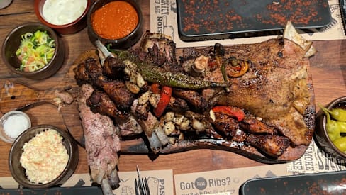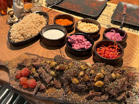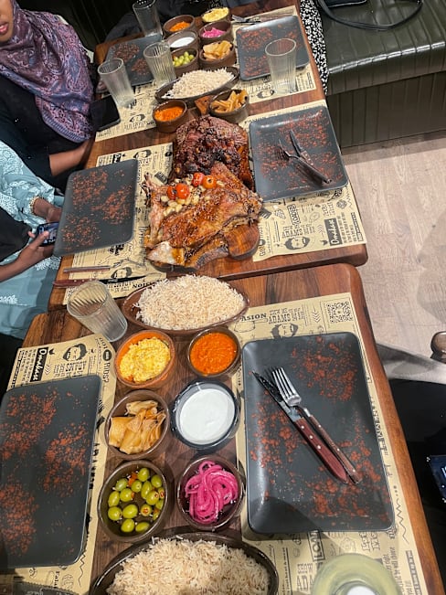 10/10I went here with my wife and her little brother and we got some incredibly tasty, tender and delicious food, we got lamb ribs and the cow rib, it was so tender and just fell off the bone, delicious sauces with free refills on all the sides includibg sauce, salads, rice, olives, mac n cheese and everything, the service was amazing and they did a little fire show for us to watch. The price is 1sek per gram so it can get a little pricy if you wouls eat alone as there can contain bones, but I would say the more people you bring the cheaper it gets. Totaly worth our trip and again amazing work. Plus it is Halal! And they support palestine by boycotting and so on!
