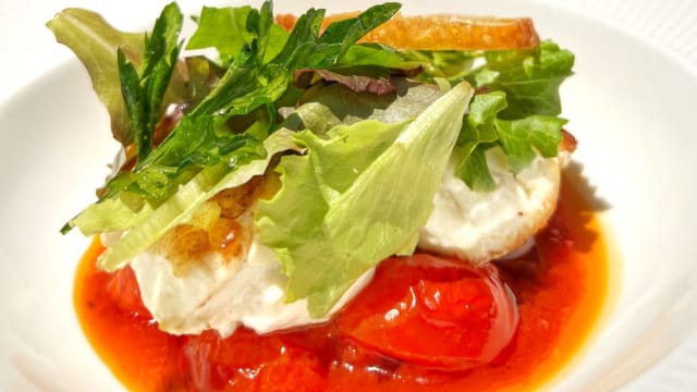 Cappesante scottate con salsa di pomodoro all’insalata e provolone del monaco