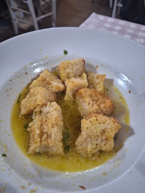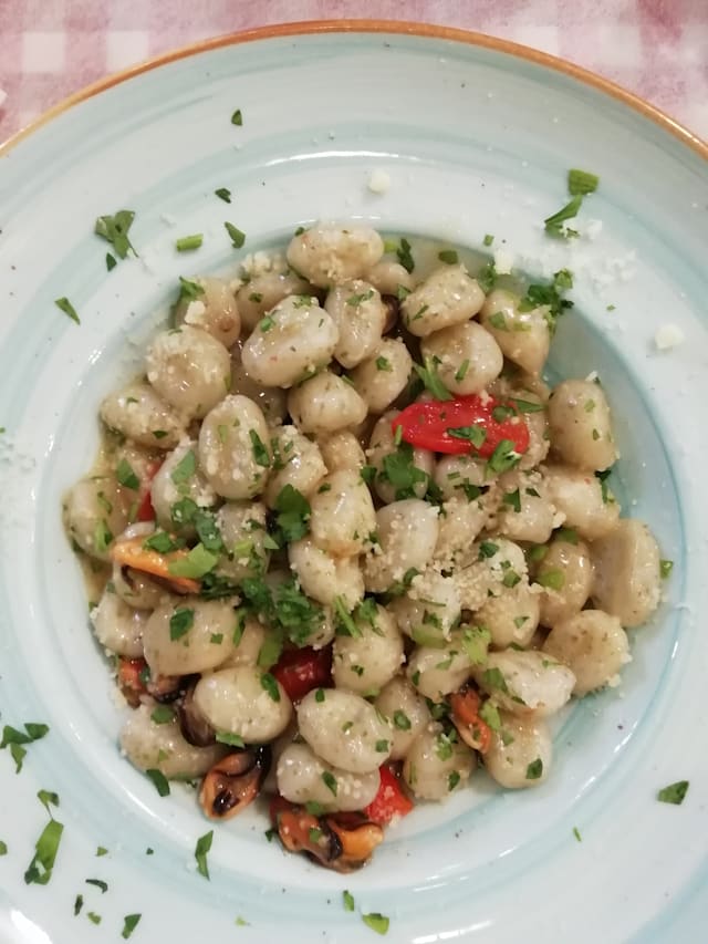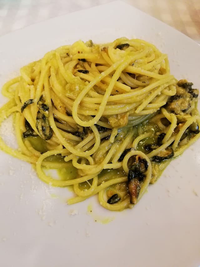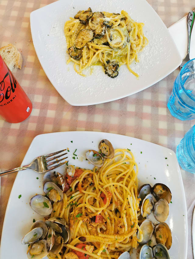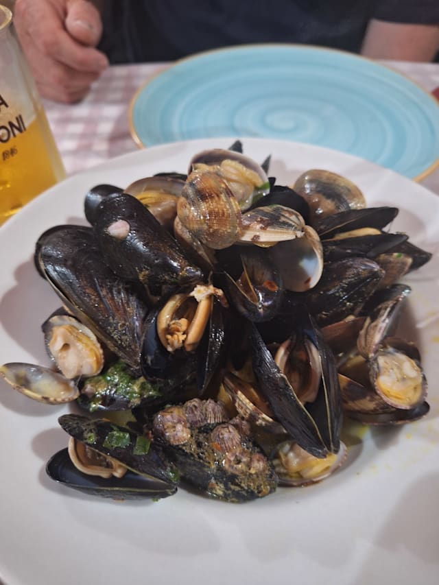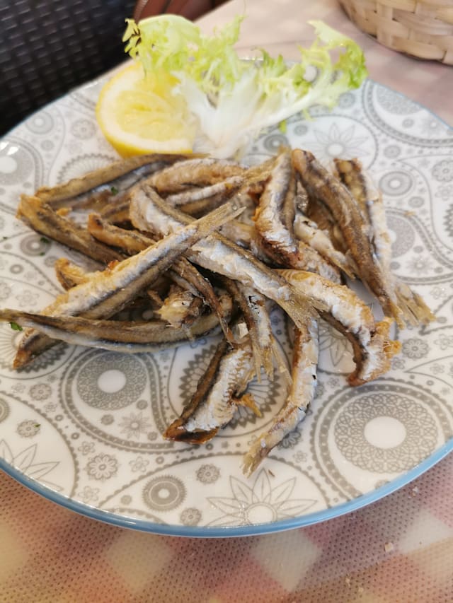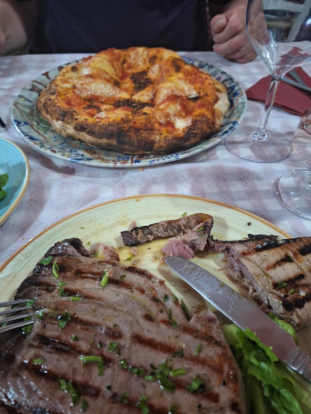 8/10Booked this restaurant as recommended on Timeout website as 1 of 12 best restaurants in Naples. It is very small with only 5 tables inside plus a few tables outside. The reviews on TripAdvisor varied and mainly scored lower due to staff service. We found the waiters efficient although not very smily. But maybe dealing with us tourists tests their patience as I witnessed some customers being quite blunt and shouting out to them. Our drinks arrived promptly and we shared a seafood starter. The actual seafood was delicious but underneath was lots of croutons in the oil which we didn't eat. My partner ordered the Vesuvius pizza which did arrive all puffed up and the filling was inside. He said it was very tasty. My tuna steak was huge and nicely cooked and so cheap only €12 I ordered a side of grilled vegetables as expected a UK size tuna steak not a Naples sized one. Our bill was very reasonable and I don't mind the €2 each cover charge we still left a tip. The tuna was salty and I drank a gallon of water during the night but it was still delicious. I would recommend this restaurant.