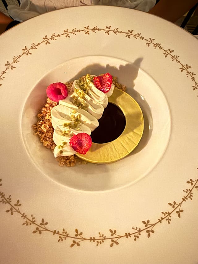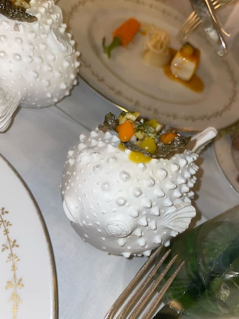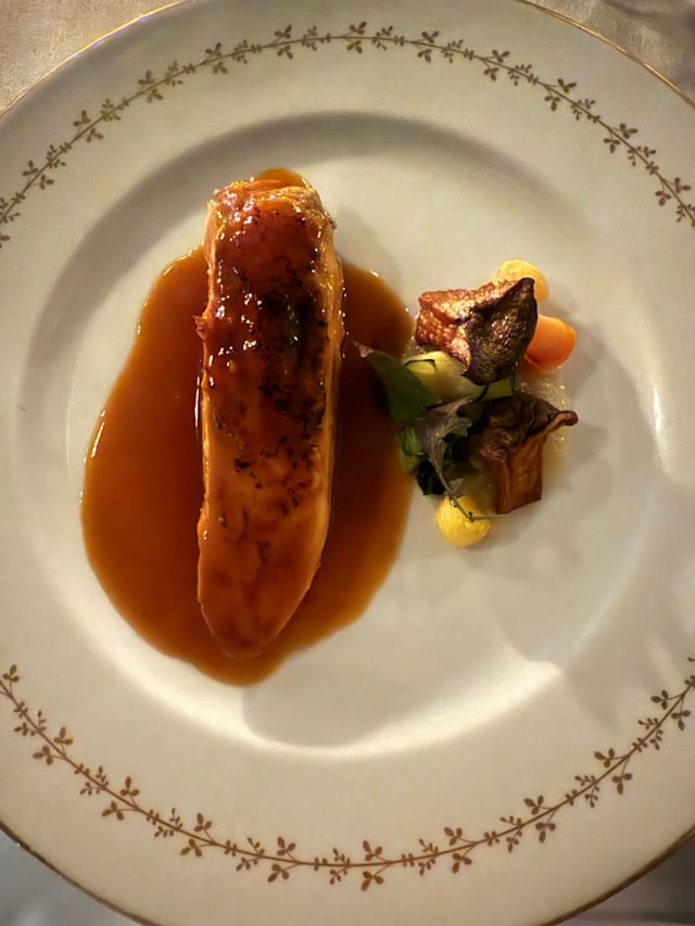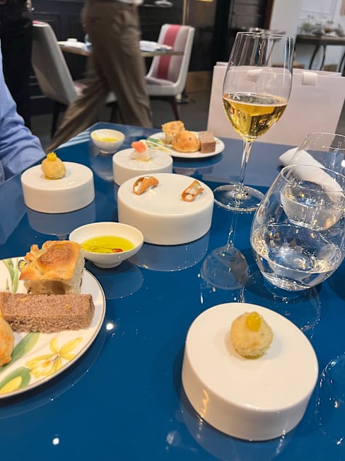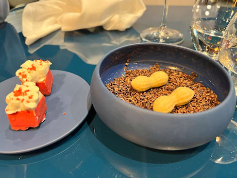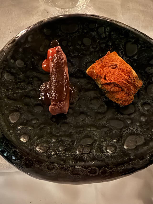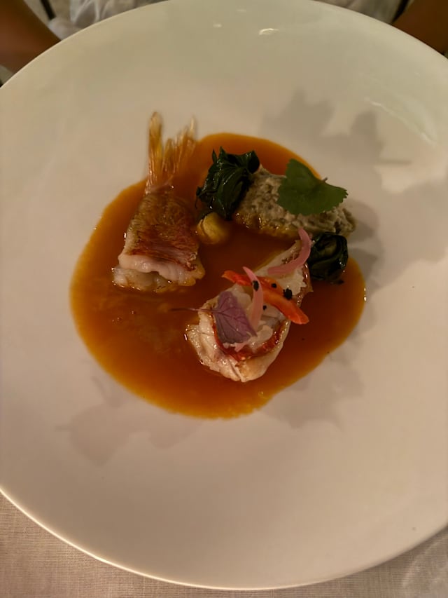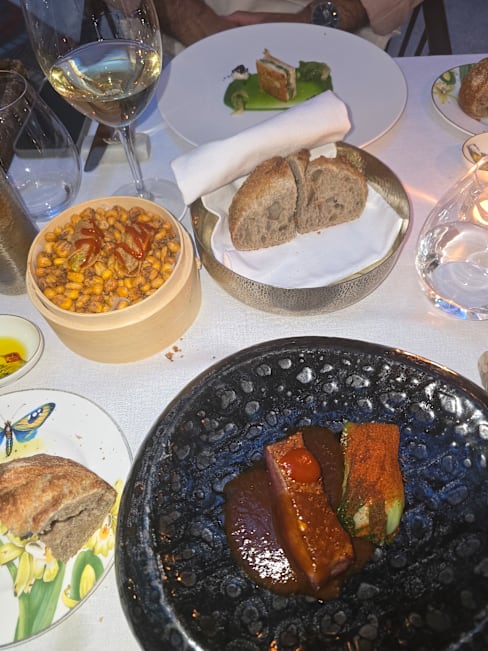 5.5/10The restaurant is quaint and beautifully designed. The service is attentive until issues arise. The pacing is very odd and we had an extra item charged that we didn't order, and an entree was brought out way after the other entree was served. The meat was not always cooked well: super tough duck and chewy filet. Unfortunately, an amuse bouche was served above glass/rock beans, and one of those was inside the food and dislodged a dental implant 😥