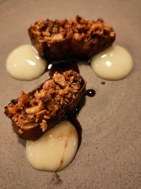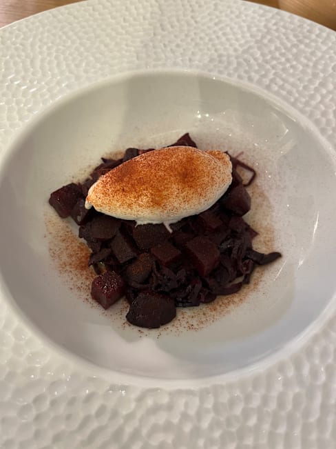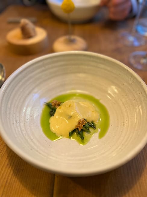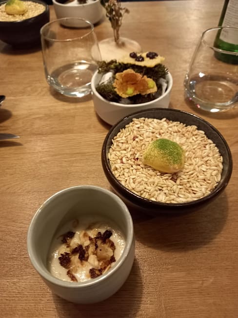 8/10Interesting, creative cooking that is seafood & vegetable forward in the 8 course tasting menu. The mushroom course and the risotto were standouts, as was the sea bass. Others were good, but not quite cohesive ( oysters were overpowered by coconut milk broth, but still a nice enough dish). I would order from the a la carte menu next time ( up to 12 choices, and the only course I would skip is the braised lettuce in a light mayonnaise— while my husband liked it, I thought it was the only dish that missed).