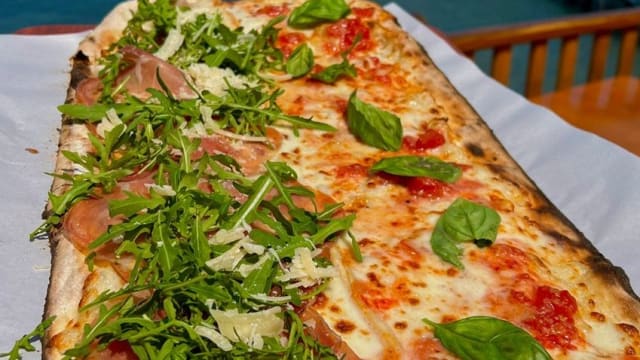 (Fiordilatte, prosciutto crudo, rucola e scaglie all’uscita)