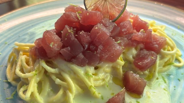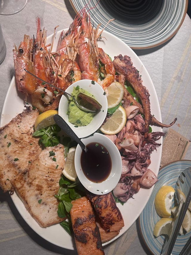 Salmone, pesce spada, calamari, gamberoni, tentacoli di polpo. (disponibile solo servizio serale)