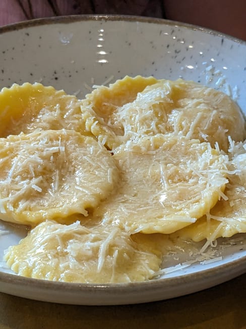 4/10The veal was dry and tasteless, no texture or flavour. The ravioli was overcooked and dry, missing. The best part of the meal was the sparkling water. The buttered vegetables are okay but the potatoes are burnt and too salty.