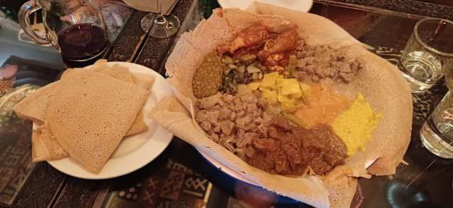 - Piadina di medio spessore spezzettata in piccoli pezzi e condita con spezie piccanti e burro sfuso eritreo e fatta rosolare in padella il tutto accompagnato da yogurt eritreo