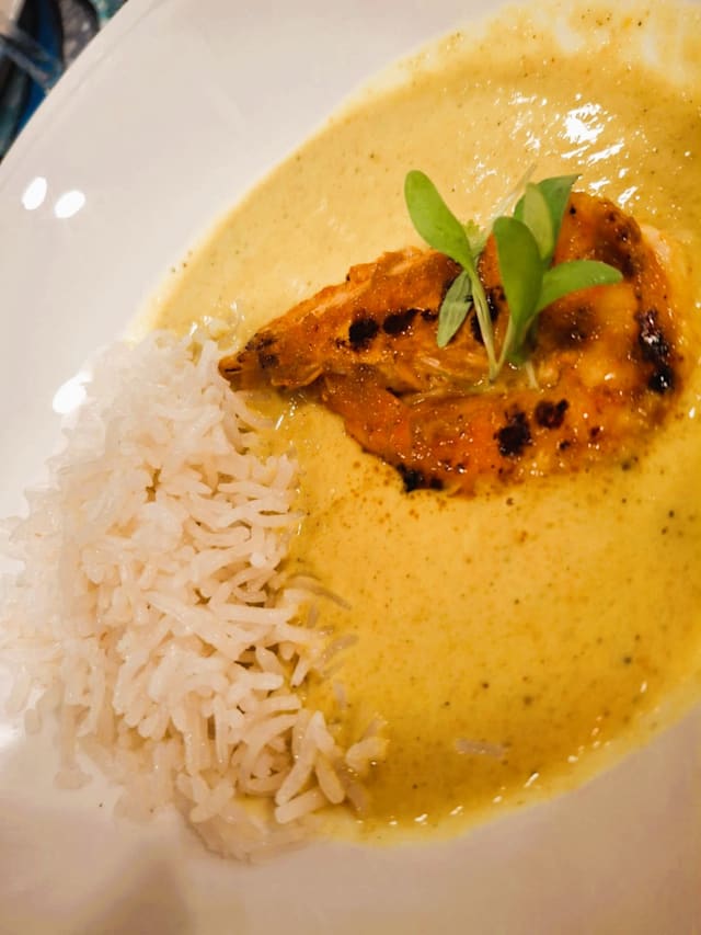 Caril de gambas com arroz