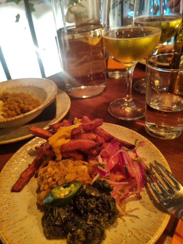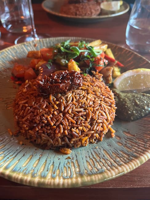 7.5/10Relaxed and casual atmosphere. food was tasty, but the dessert was a big disappointment, I ordered the puff puff with ice cream but all I got was one small fried mini donut with the tiniest scoop of ice cream, so not worth it. Friendly staff but as soon as we got our food it was like we was forgotten, needed to work hard to get their attention to order more drinks/ dessert and get the bill to pay. Besides the flaws it's a good place and we where happy with our visit.