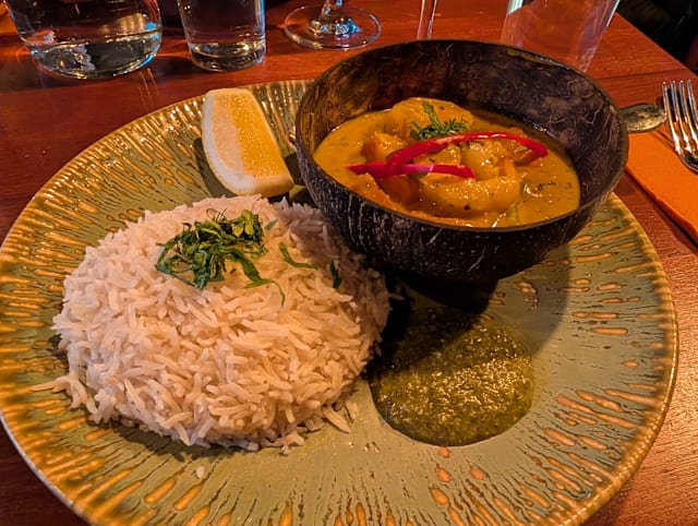 8/10The beef stew was delicious, but the portion was very small. We also had the coconut shrimps which had a generous amount of sauce and many shrimps. The sauce was a little bit boring compared to the very well seasoned beef stew but that's not neccesarily a bad thing.