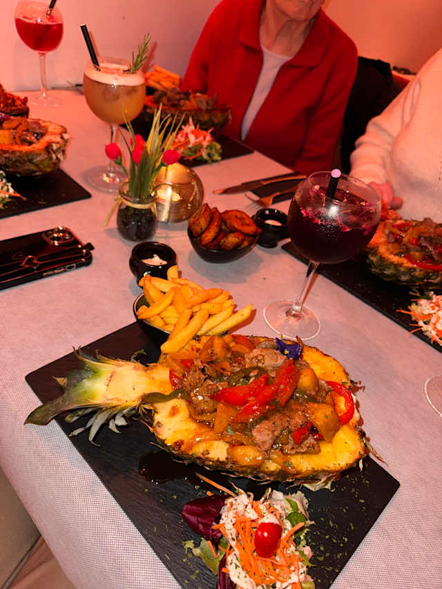 5.5/10Quantity of food. The dish with meat served in Pinapple was 24 euros for a pinapple and very few pieces of meat. The sides portions were also small.