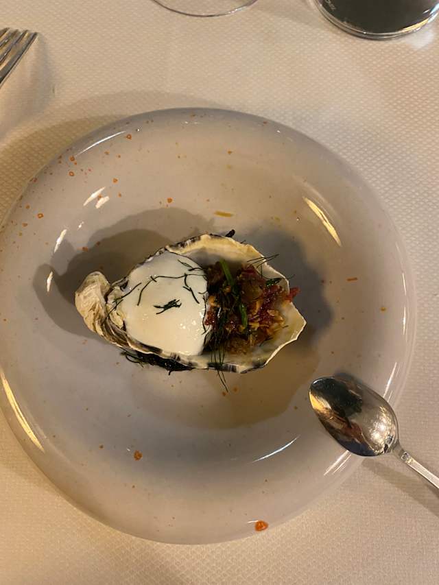 5/10Unsure why this restaurant has been given a michelin star. Actually I am unsure if they have one. Regardless, service was hectic as servers kept dropping and breaking utensils on the floor. We were unfortunate enough to be seated right next to the kitchen where all of these were happening. I don't mind it breakages as accidents happen during dinner service but it got frequent throughout my 2.5h of dining experience there and it made the ambience very unmichelin-y. My partner ordered the wine pairing and the lady explained the pairings from the start and stopped when we got to the main dishes which I thought it would be more important to know what the wine pairing is etc. However, certain waiters/managers were excellent and friendly so I wouldn't fault that. 700+€ for both parties + 2 bottles of still water + wine pairing. Would we go there again? No. Is the food worth the money and the amount of time we spent there? No. Before booking, please check why this restaurant only has 4.3 stars on google review. I should have went with my gut and booked elsewhere for Valentine's Day. I felt like our money and time would have been better spent at a restaurant with no michelin stars with better service and food. Disclaimer: this is not our first time eating fine dining so I wrote this review with unbiasedness towards fine dining.
