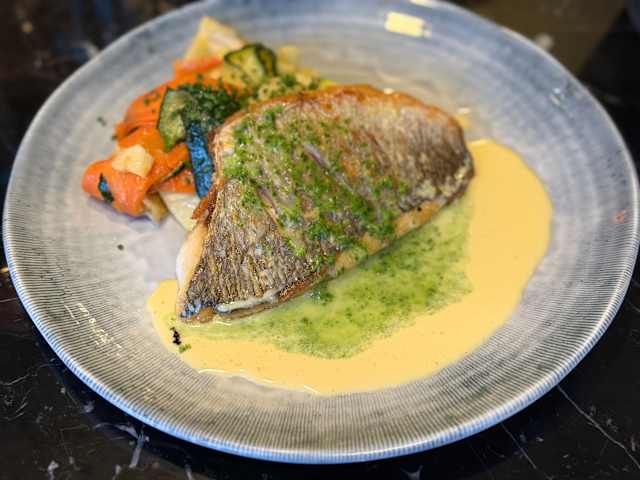 - Daurade aux agrumes, tagliatelles de légume sautées