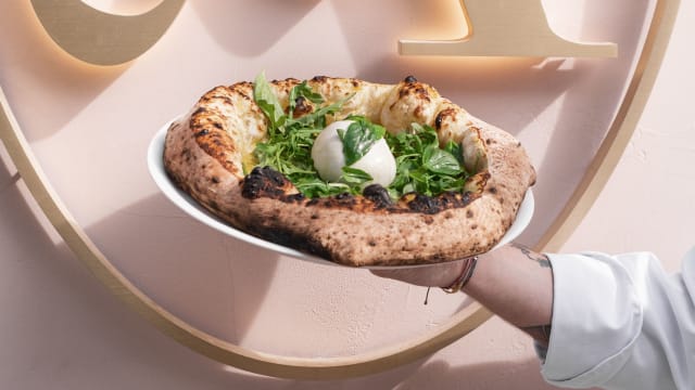 Sauce tomate san marzano d.o.p, fior di latte, artichaut, champignons, jambon cuit, salami napolitain, olives noires, huile d’olive bio, basilic