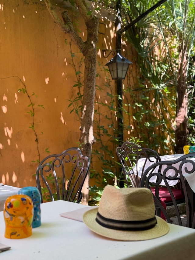 10/10We were just off the plane and ready to sit outside on the sidewalk for a late lunch. Instead they recommended the interior garden, such an oasis. Food and service was great.