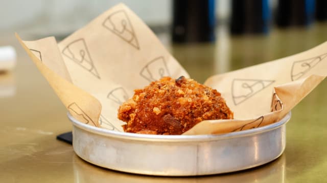 pomodoro, fiordilatte, melanzane fritte, guanciale, stracciatella e basilico