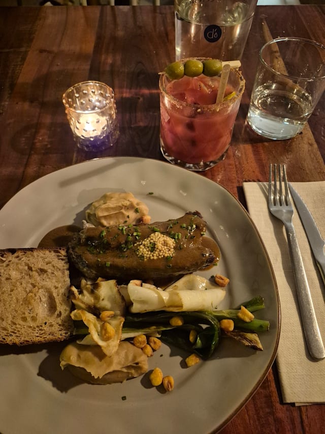 7/10The food tasted reasonably good. We opted for the 1) "corvina" with cilantro rice & lingueirão, and for the 2) 16h pork. We also took oysters as entry dish, which were OK. The dishes were promptly served, because the food was all pre-cooked and was warmed up on the fly. If you do not mind this procedure (which, given the way it was made, leaves some parts drier than others) then go ahead and enjoy. For us, this is nothing we feel like repeating. The prices are expensive but the fork 50% discount tamed the bill. Please note that desserts are not included in the discount. Wine glass prices vary from 6.5 to 7.5 Euros (no disccount as well).