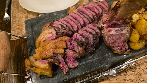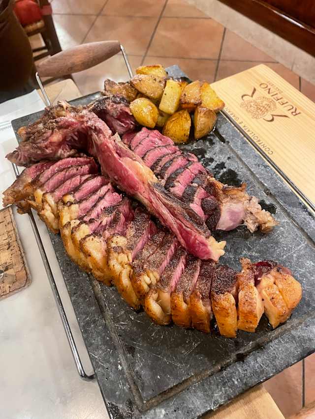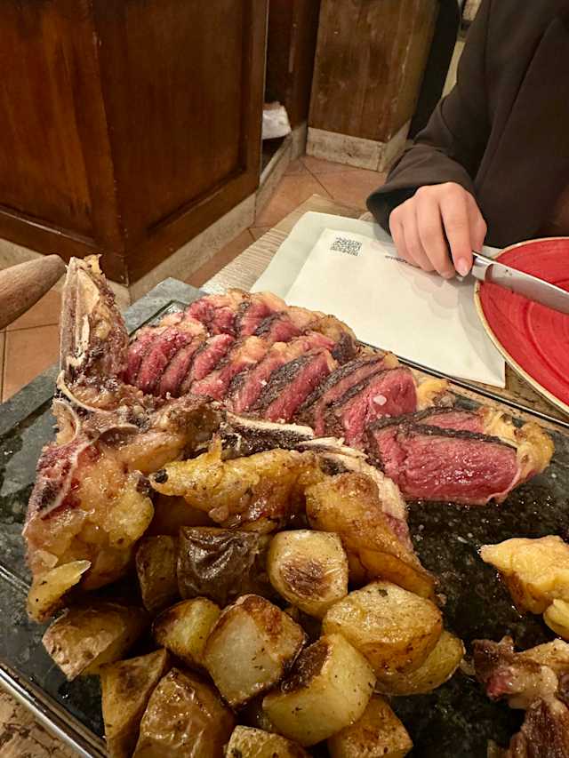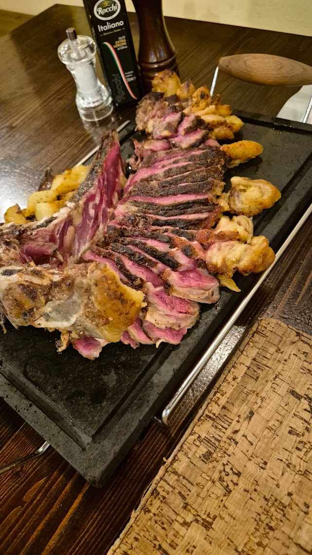 2.5/101.when booked with the Fork with 20%DC, it seems that they try to over price the steak to compensate the difference. please do not order fiorentina steak here. Better not to have steaks but only pasta or appetizers when you visit with discount. 3. Atmophere of the restaurant is not in italy but somewhere in middle east or west asia. it made the genuineness of the food in question. 3.they serve the fiorentina T-bone steak pre-cut. didn't cut it in front of us. not sure that was real T-bone steak that we chose. 4.we booked on Sat. at 6pm. no one else in the restaurant but only us. Very unpleasant experience that we felt like having more than 100eur dinner in unpopular restaurant. We should have left it when we realized it. we would never ever visit this restaurant again.