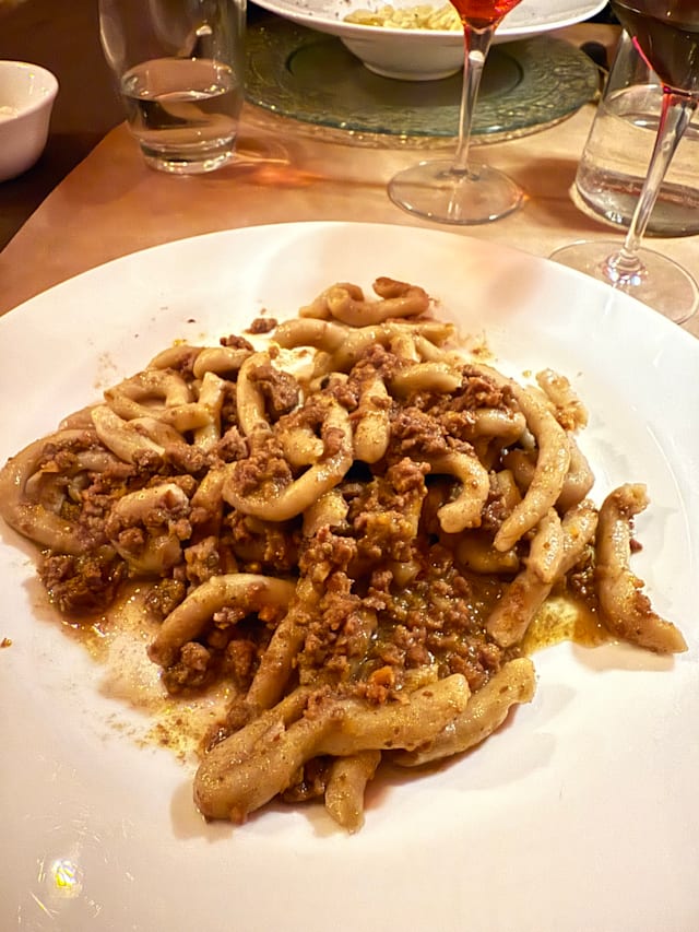 Pici fatti a mano alla farina biologica di grano tenero con ragù bianco di chianina