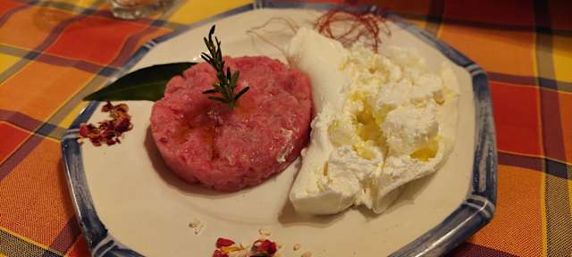 - Battuta di fassona piemontese con insalatina di finocchi, arancia e scaglie di grana del monviso