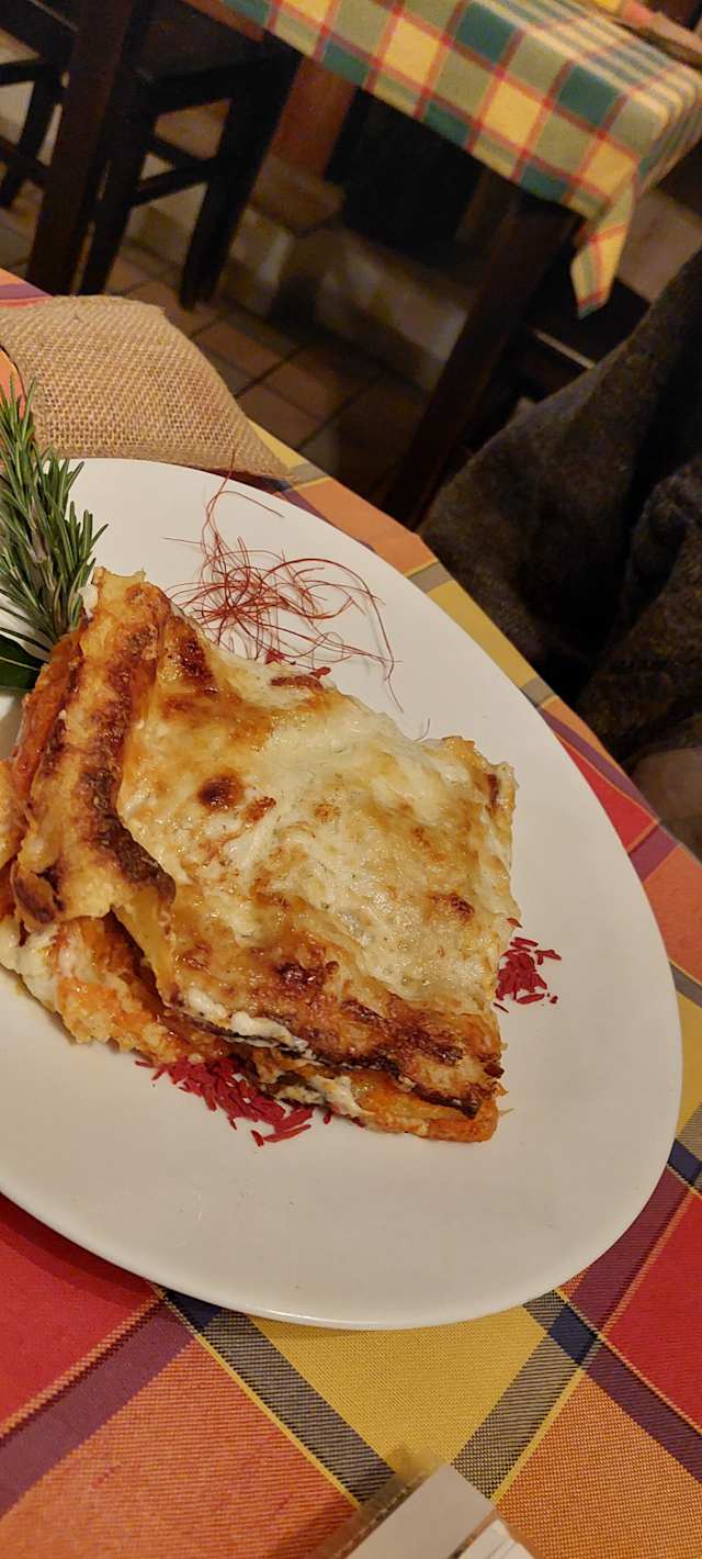 - Pasta fresca alla crema di toma blù, champignons freschi, salsiccia, al profumo di polpa di pomodoro con grana del monviso e prezzemolo