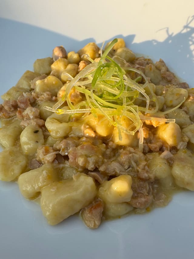 Gnocchi di patate con ragù di coniglio e sedano fresco