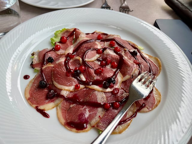 Petto d'oca affumicato con salsa ai frutti rossi