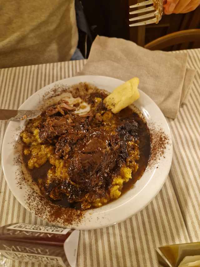 - Il piatto della domenica di nonna: involtino, polpetta e salame cotto in umido con polenta