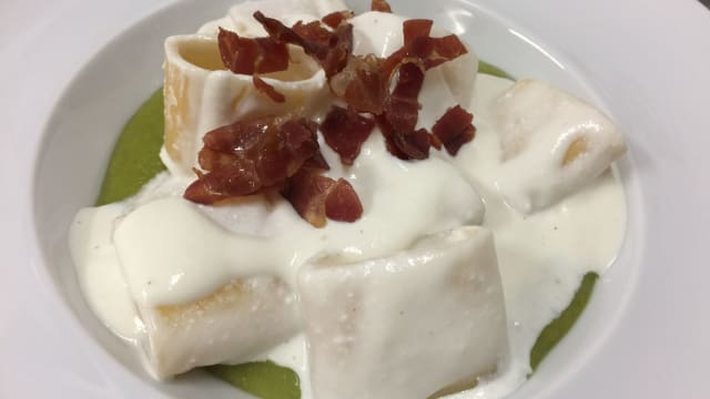 Ravioli freschi di porcini, su fonduta di taleggio capoferri