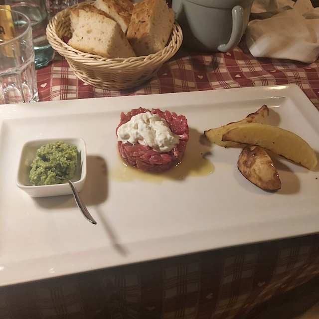 Tartare di manzo 150 gr con stracciatella e pesto di rucola