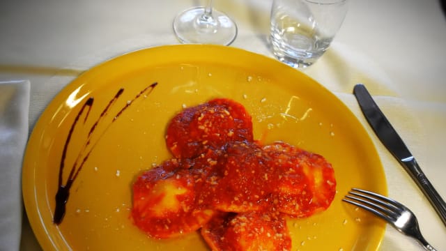 - Ravioli di burrata con la conserva di pomodorini ciliegino del casale