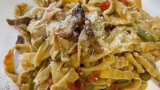 pasta all'uovo con guanciale zucchine pecorino di nostra produzione e pepe