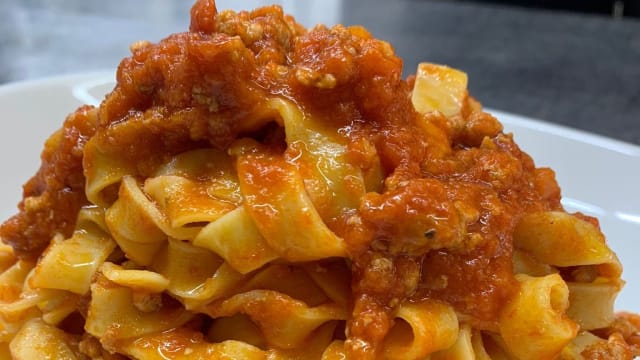 - Paccheri con ragù bianco di coniglio e scaglie di pecorino