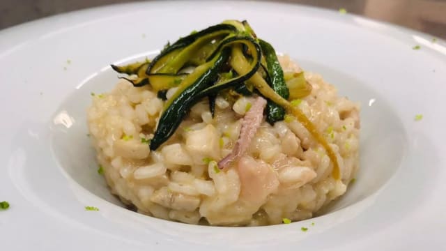 - Selezione di salumi (culatello, capocollo, pancetta, salame), formaggi (formaggio vaccino "grottone", caciocavallo di bufala semistagionato, caciotta semistagionata di capra), olive nostrane condite, bruschetta con pomodorini, crocche, fritti misti e sfizi del giorno in base alla disponibilità.