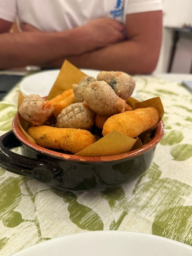 7/10The setting was rural and reached by taxi. It was a cold evening and we were glad to eat indoors. We were the only people eating there when we arrived, and were later joined by another couple, and later still by a local family. The owners/staff were friendly but our lack of Italian and their lack of English made communication difficult. We were left unsure what we had ordered and probably could have ordered more satisfactorily had we been able to communicate better with them. The food was hot and satisfying. We would have liked to be there with Italian speaking friends and on a warm summer's evening.