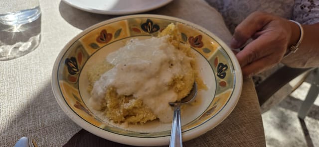Grazie per la recensione purtroppo qui nella zona è pieno di gatti . Da amanti degli animali noi siamo lieti da mangiare e li abbiamo sterilizzati e facciamo del nostro meglio per tenerli lontano dai tavoli ma purtroppo i gatti sono confusi da i clienti che li continuano a chiamare per dare loro da mangiare sotto i tavoli. La prossima volta consiglio di mangiare all'interno dove non c'è questo problema ???? PS se vogliamo guardare il lato positivo dove ci sono tanti gatti in campagna non ci sono tanti topi????