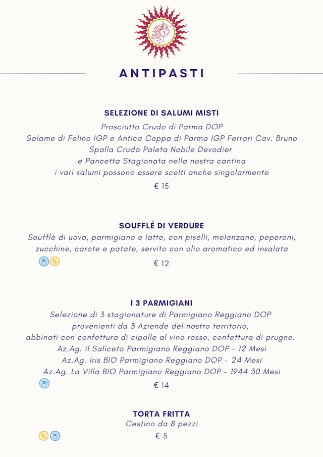Pasta all’uovo tipica della tradizione parmigiana, detti anche gallegianti. Ripieno con stracotto di manzo, vitello, pane e parmigiano. Serviti con brodo di carne caldo