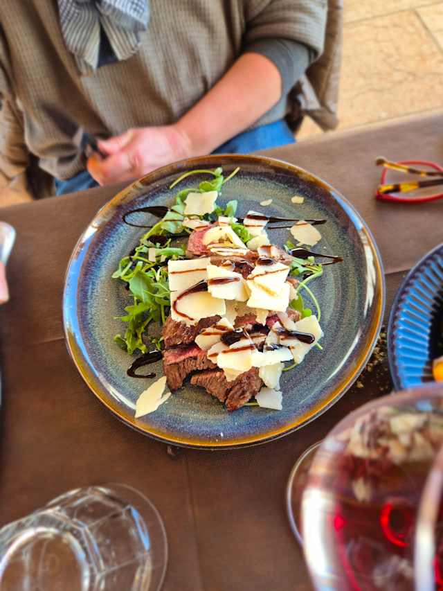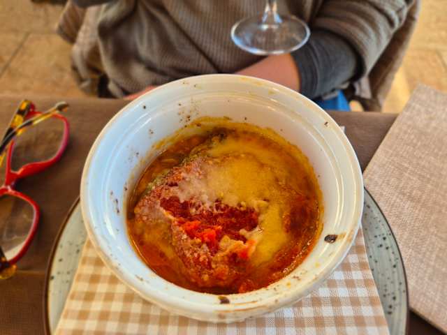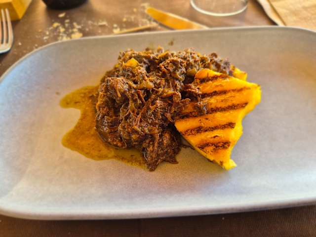 7.5/10There seems to be a clear distinction between the agriturismo and the restaurant and we came for dinner only. We expected something special from a business with such a high score, but the general experience didn’t exceed the average. The setting, first of all, is a huge room with plenty of people, and a couple of weeping children. The staff, secondly, is polite but not especially friendly. Last but not least there’s the food itself. Not bad, but not very refined either. We enjoyed two types of appetizers (mixed salumi and mixed cheese) and that was ok, and the main dishes too (tagliata and involtini) but what it all lacks to justify the high score is refinement. Grisini in plastic wrappings, parmezan cheese in pre-packed wrappings, no pepper mill, a Valpolicella classico of 7 years old (vintages are not mentioned on the menu)… The overall experience is more like the one in a busy Italian family restaurant, rather than the one in a gastronomical place. Prices are very affordable though.