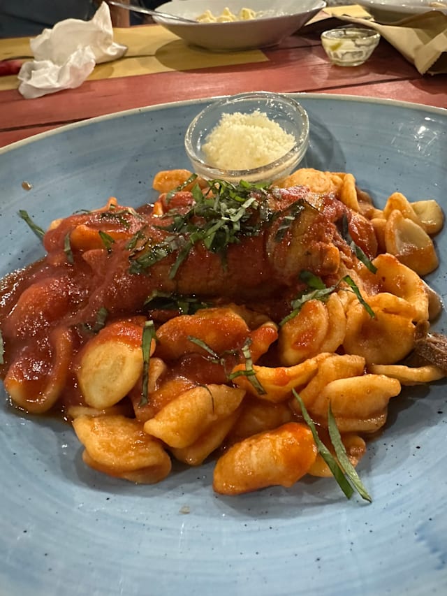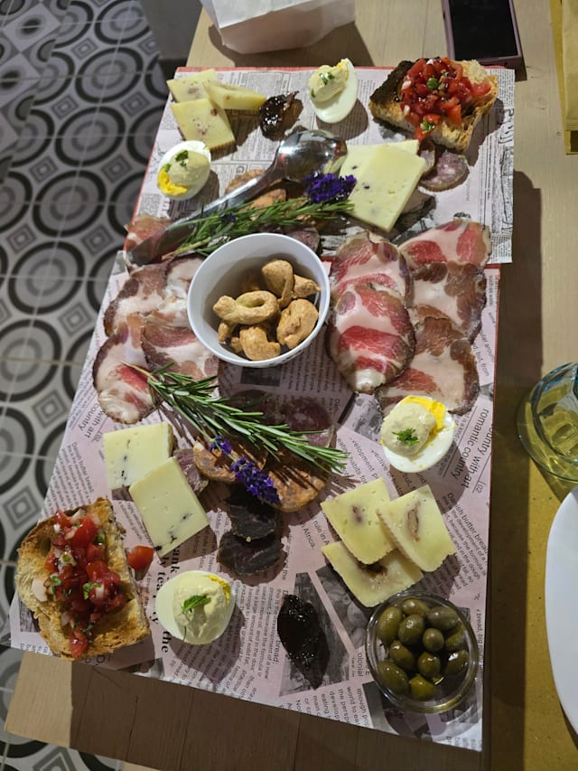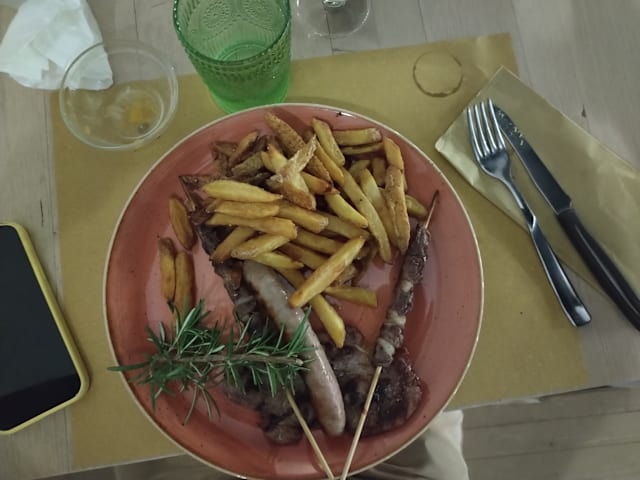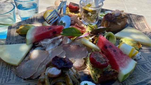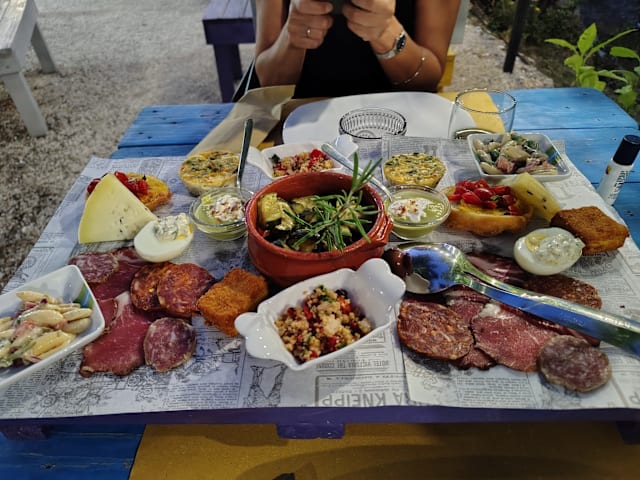10/10We were welcomed on arrival by Marianna and her son Enzo - lovely, friendly people! Dinner was outside at brightly painted tables with little lights hanging all around which made the space really charming. All tables filled; it’s clearly popular. The food was amazing. First of all a variety of cooked meats the family make themselves from their own farm animals, cheese, breads topped by various grilled vegetables and little bowls of a couscous dish, all presented very prettily. Followed by some home made foccaccia style bread. A mixed green salad with a very tasty dressing. Then various barbecued meats and finally chocolate brownie with apricot and a berry compote, all delicious. The coffee afterwards was good and Marianna then brought round some fruit liqueurs of her own making, mmm. All in all a thoroughly memorable evening and very inexpensive by British standards. Would definitely recommend!