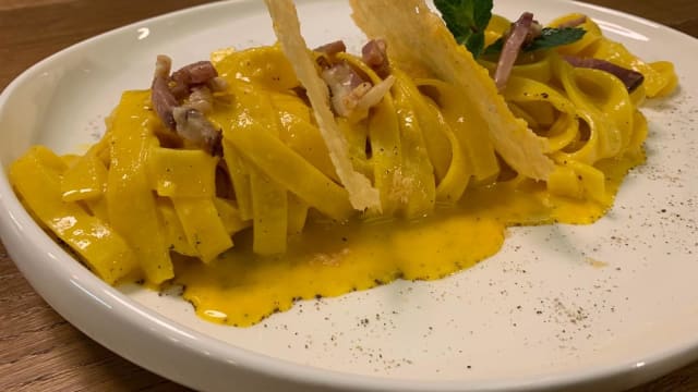 - Gnocchi al guanciale con scaglie di pecorino nostrano