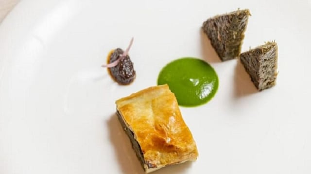 Torta di erbazzone, crema di parmigiano reggiano 30 mesi e chutney di cipolla rossa all’aceto balsamico tradizionale san paolo