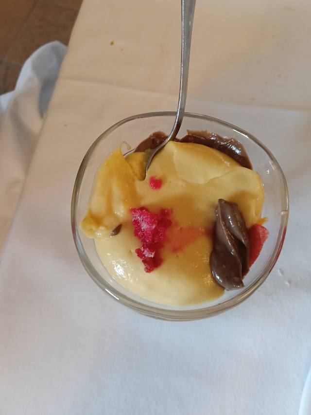 - Semifreddo allo zabaione con ristretto di arancia e miele, amarene