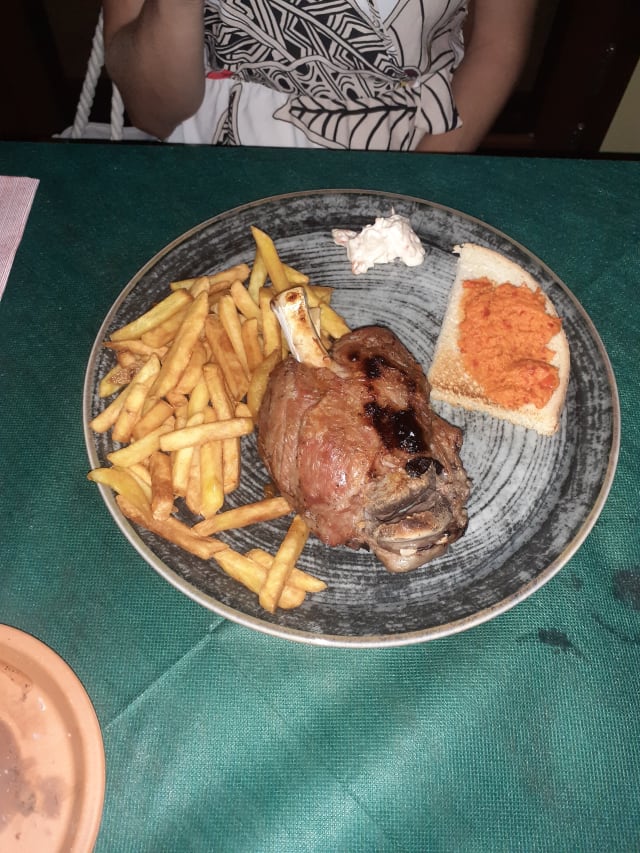Bacaro( letto di polenta alla griglia coperta di cipolle caramellate e spalla di maiale)