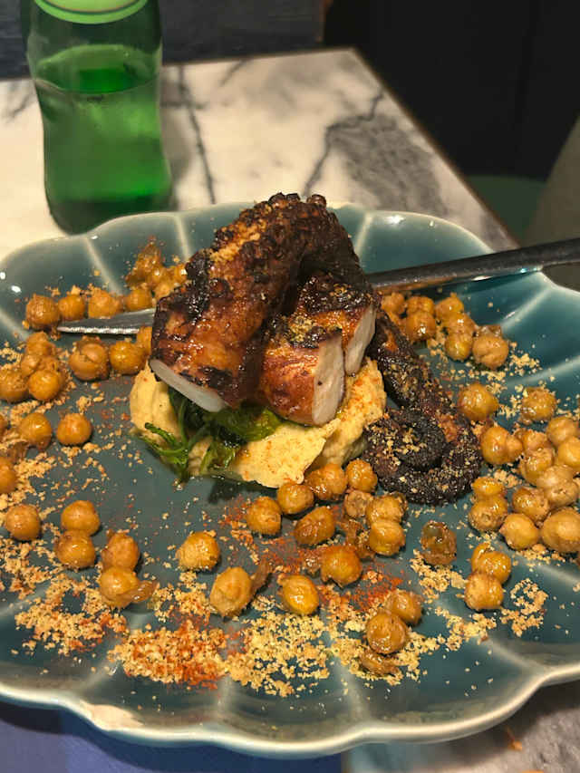 - polvo grelhado com creme de grão e limão