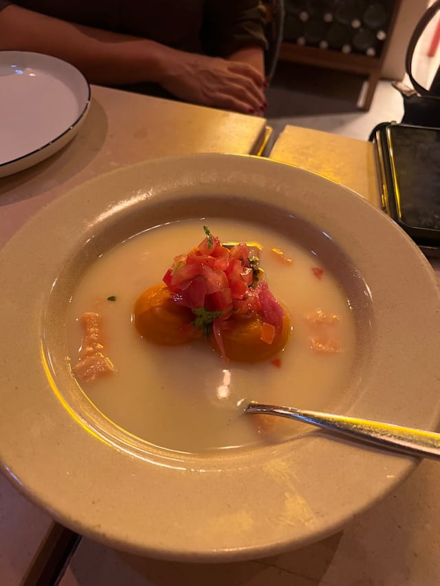 9.5/10Delicious and well-presented food, although it would be good to have a vegetable or side salad option too. The staff were very attentive and the decor is interesting. The music was a bit loud to start with but the staff kindly turned it down so we could hear each other speak. I’m sure we’ll be back, especially if the restaurant adds a vegetable side dish.