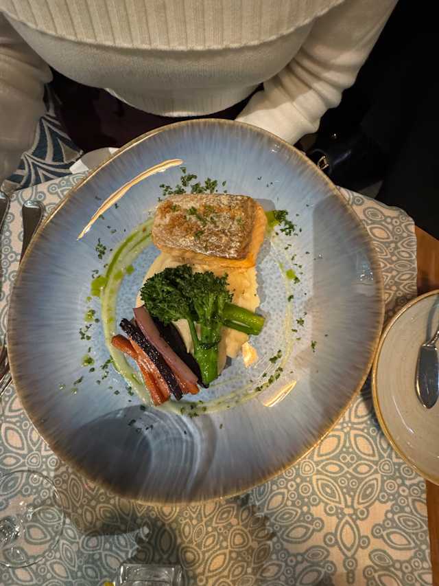 10/10Tucked away in a side road inside an hotel. Great food, can definitely recommend the avocado, prawn and chicken salad starter, it was fab! Be warned, it is a big portion, I had it as a main not expecting something quite so big, it was delicious. Staff very friendly and attentive, a lovely evening, thank you. Once the evenings warm up sitting outside on the decking must be very pleasant.