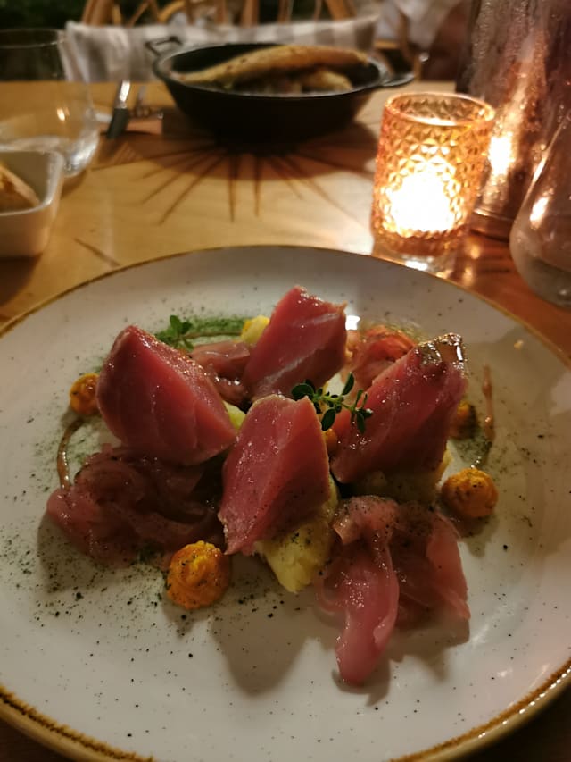 7/10The outdoor setting Is wonderful. On arrival we ordered an aperitif, gin and tonic and aperol spritz. The tonic was flat the the aperol was served with water not procesco We thé ordered a bottle of wine from the menu, chosen because it was a 2016 vintage. A 2020 version was brought to the table and when we questioned it the waitress replied that it was the new one. Our starter and main courses were delicious so we ordered a pudding. When it arrived at the table it was white chocolate rather than the dark chocolate as described on the menu. When we asked why we were told that it had changed! We left feeling that as the customers we were expected to just accept whatever standard was decided by the restaurant. We would not return or recommend it
