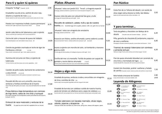 10/10One of the best cart menu you can find in Valencia. They have kids menu too. Everything was delicious. Keep some place for the desserts. They are unique!