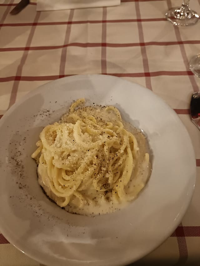 10/10This restaurant was recommended by our B&B for authentic Roma style cuisine. I had the La carbonara and my wife had the Il cacio e pepe. Both were excellent pasta dishes. The service was very good. The servers all seemed to help one another out. It was quiet with a nice atmosphere. Definitely recommend.