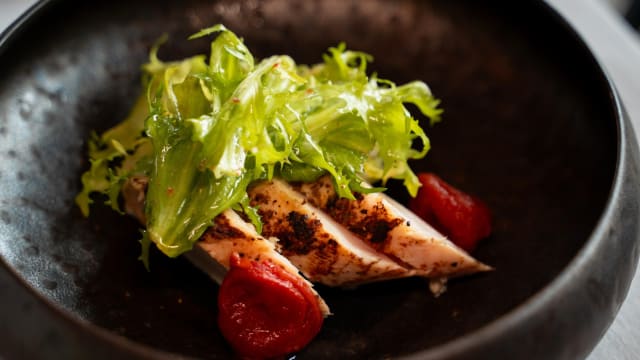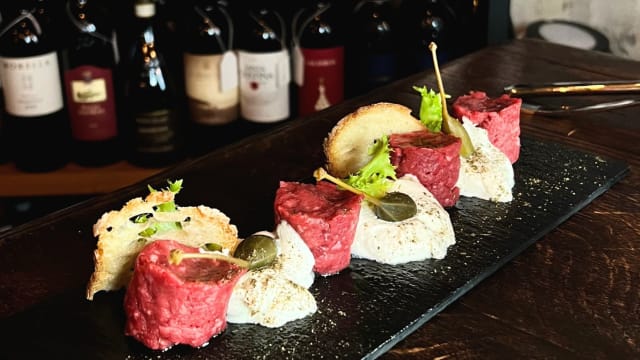 Cecina, piquillos, stracciatella, olio evo