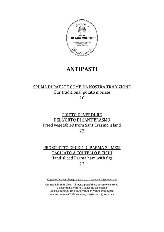 4.5/101) food was somewhat adequate for the price. Not the best we had in Venice but still OK. 2) they charged us 20 € for a pasta (not homemade) with butter for a small kid 3) they basically charged us twice for the service: 5€ per person for the "coperto" PLUS a 10% on the total price as "service".